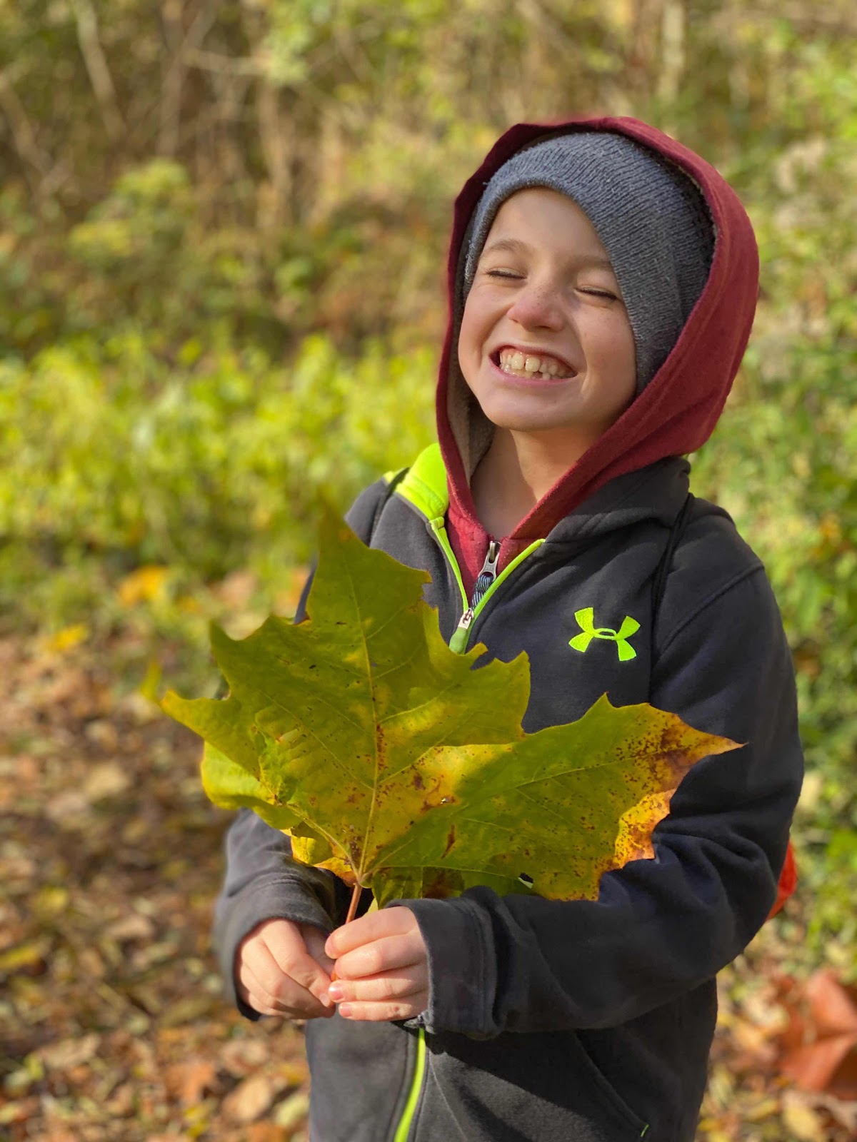 The Cub Scouts in Leo went on a nature hike at Mattea Park. I took the three younger boys. Dustin is a wolf scout and Nathan is a kindergarten lion scout. The guide took our group all around the park to point out interesting things. The boys had curious questions about things they found on the back of a leaf, or a strange type of leaf, or a unique looking tree. Dawson found the biggest leaf in the entire park and was very proud of that. Oh and titled along with us excited to be a part of the group. We had a fun time spending the morning in nature!