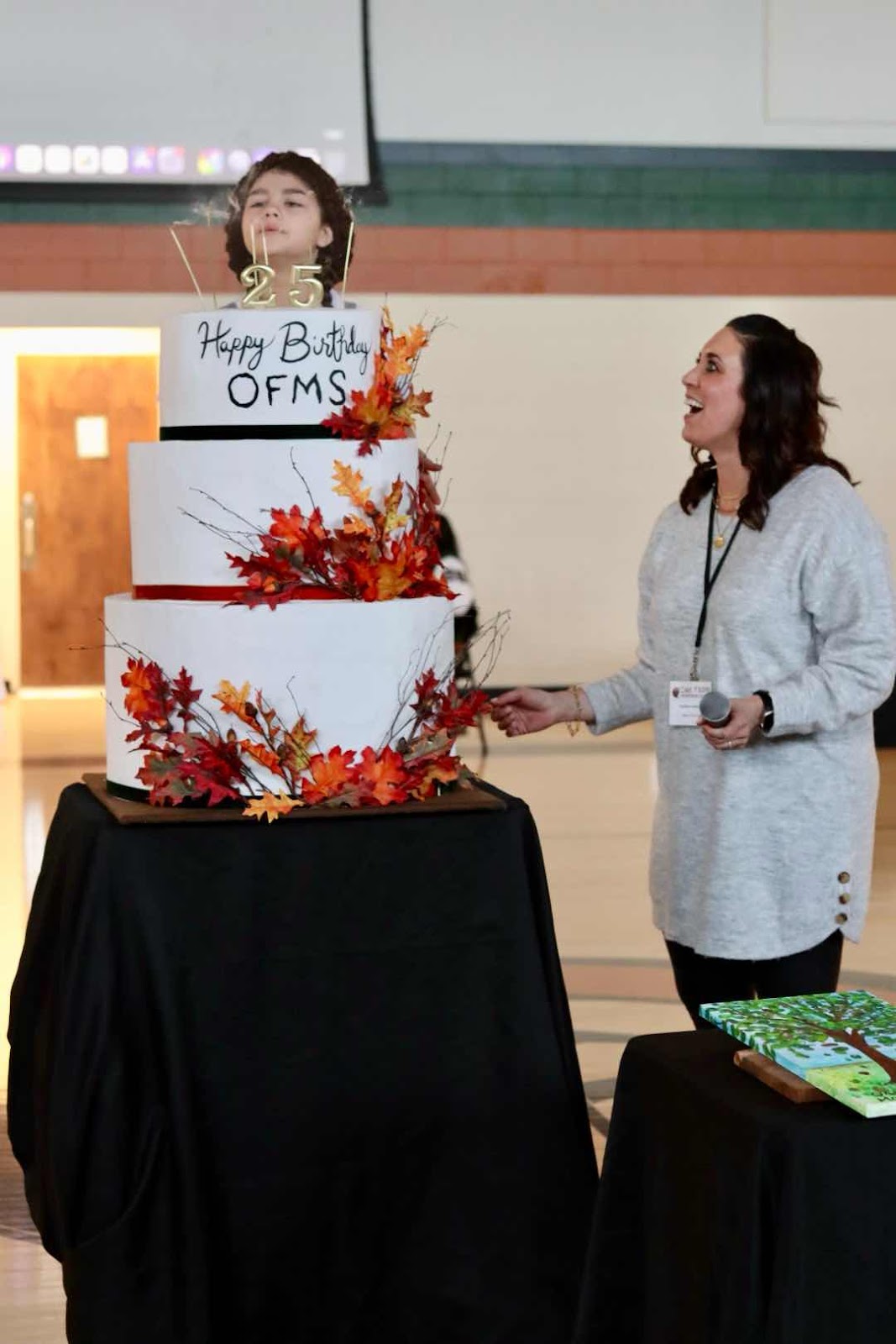 The mood was festive in the Wellness Center on Friday, January 24th, as approximately 200 guests gathered to celebrate OFMS turning 25! Party hats and noisemakers set the scene as Head of School, Candice Holbrook, kicked off the event with a few words of reflection. She then welcomed Phil Salsbery, Lorene’s husband, who shared heartfelt remarks about Lorene and OFMS reaching this milestone.
